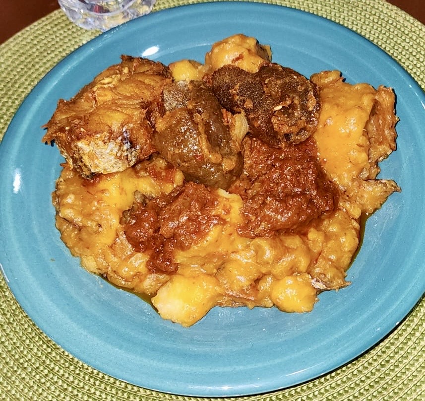 From the West Coast of Africa, meet Nigeriaโs very own Asaro (yam porridge). Yam cooked till soft, some mashed to create a velvety base, while others are left as chunky soft โstone-likeโ pieces. It’s smoky, spicy, and proudly Nigerian.